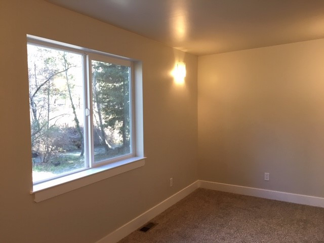 Completely remodeled downstairs 850 sf one bedroom apartment with walk-in closet, washer/dryer, full beautiful kitchen with refrigerator and range included. New paint, flooring and windows.This is the downstairs apartment in a duplex. Off street parking is available behind the house. Garbage is included in rent. Wolf Creek frontage, walk to town. No pets. No smoking. Available May 2026.